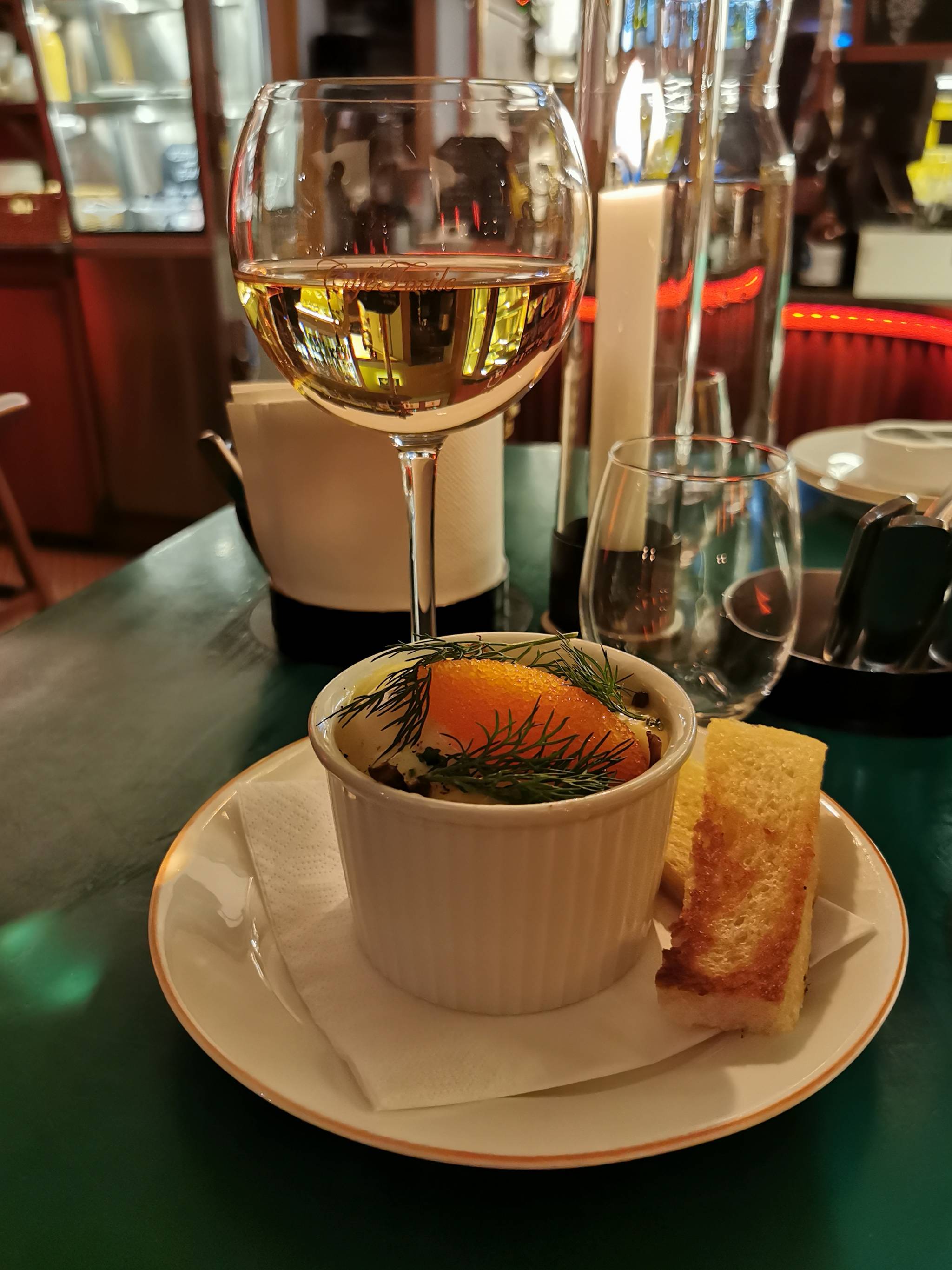 Œufs cocottes with funnel chanterelles, hollandaise and roe from Kalix.